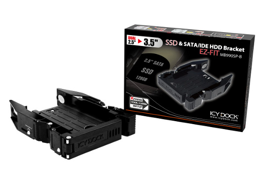 2台の2.5インチ IDE/SATA HDDやSSDを3.5インチベイに装着することができるブラケットです。